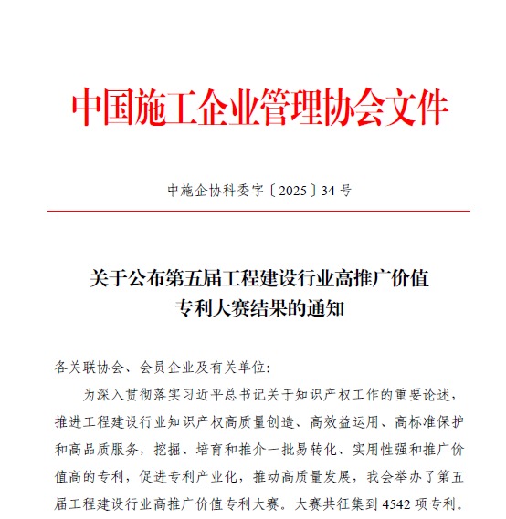 倍特建安榮獲第五屆工程建設行業(yè)高推廣價(jià)值專(zhuān)利大賽三等獎